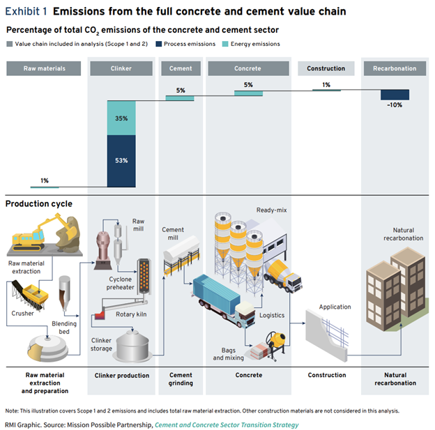 The process of producing clinker in Ordinary Portland Cement (OPC) is responsible for 85-90% of carbon emissions from concrete, and concrete is responsible for 8% of annual global carbon emissions. There are novel cements promising near zero carbon emissions in development including Brimstone and Sublime, but all of these cements have problems with scaling to meet the growing global concrete consumption needs.